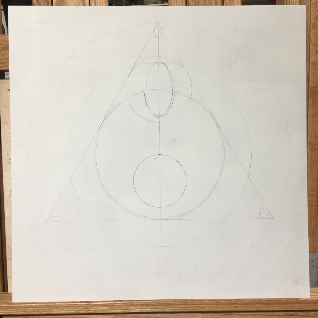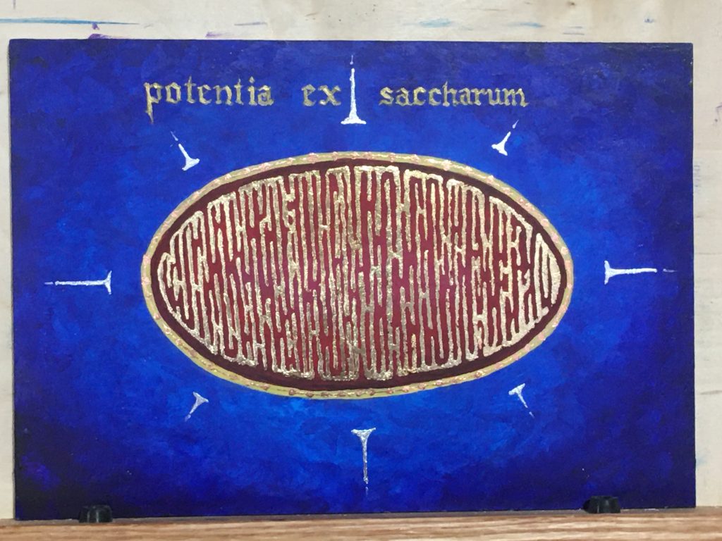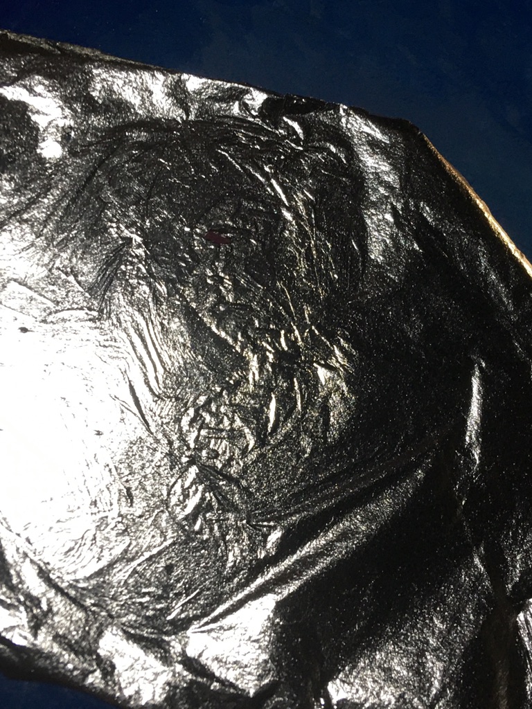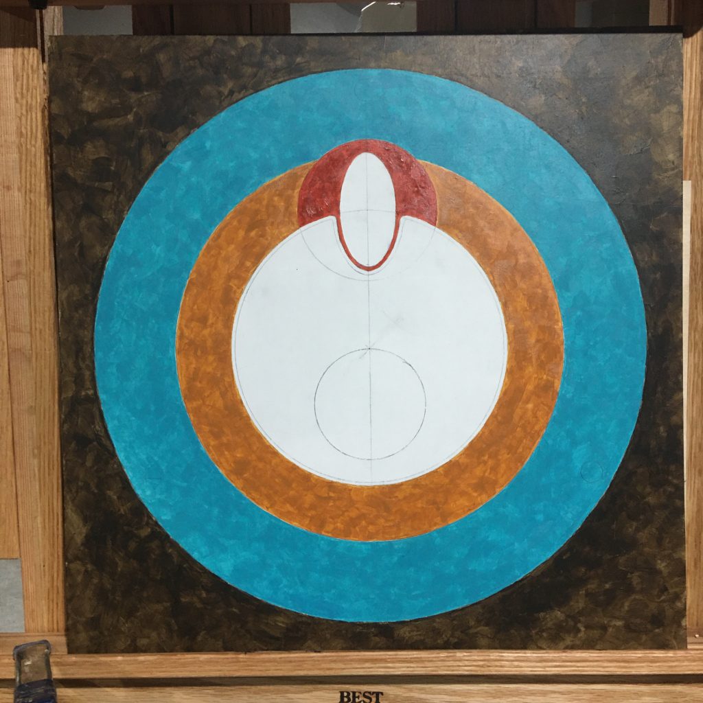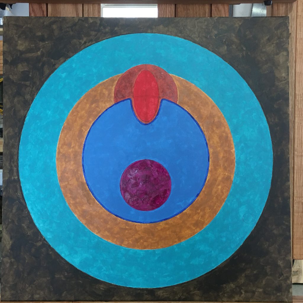 The geometry Begining underpainting Underpainting complete Beginning highlights and lowlights. Dried mud. Puddle Size applied for fake silver leaf