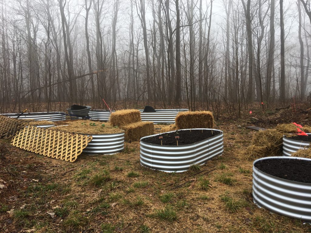 Starting in April 2021 change is afoot. I found all four property corner posts. I found some clean, modern looking galvanized raised beds and put them in what will be called the ‘upper garden.’ A circular area, about 36′ in diameter will be the lower garden, and there, I will offer some gardening space to neighbors, and I’ll plant corn, legumes, and cucubrits.